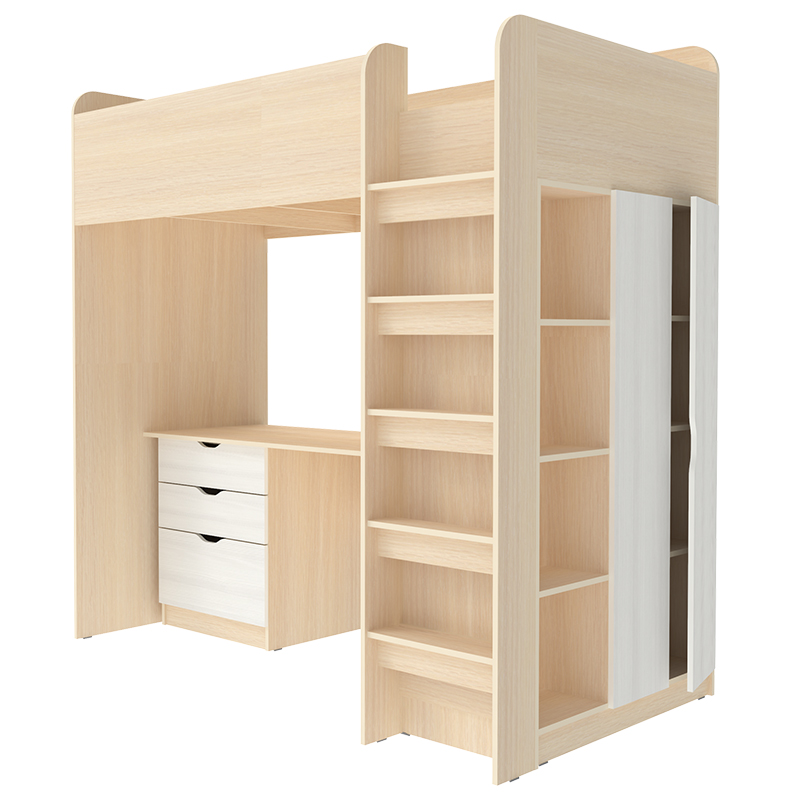 Кровать-чердак Polini Simple с письменным столом и шкафом Дуб Молочный Белое Дерево