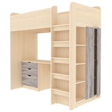 Кровать-чердак Polini Simple с письменным столом и шкафом Дуб Молочный Бетон
