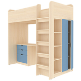 Кровать-чердак Polini Simple с письменным столом и шкафом Дуб Молочный Светло-синий, голубой