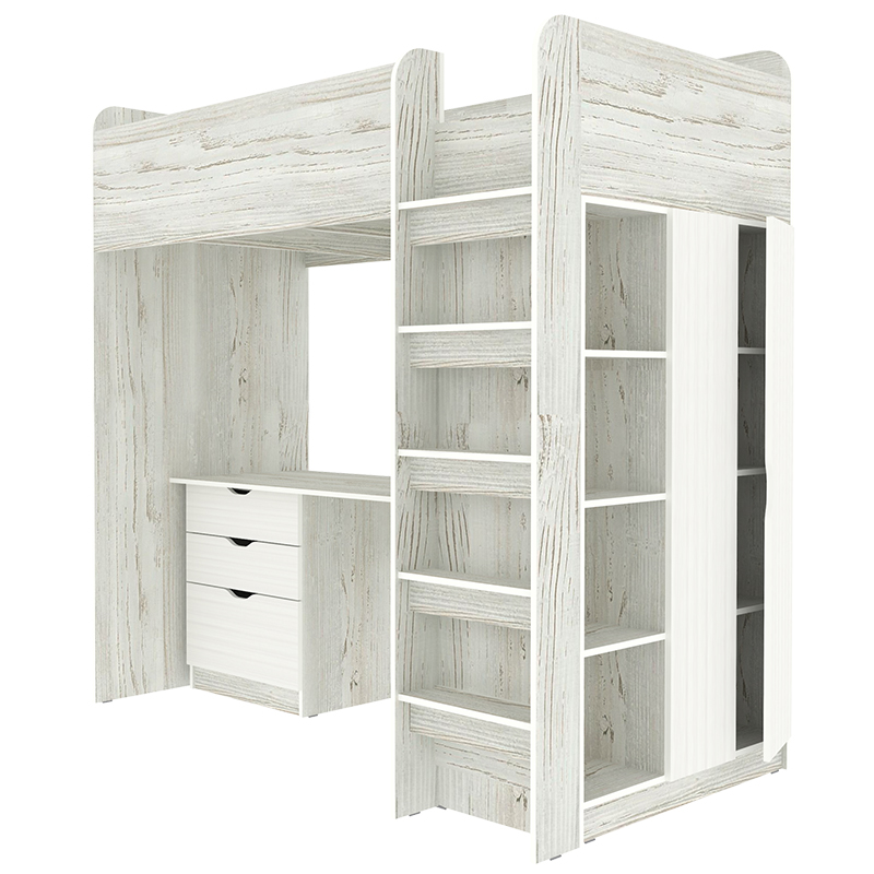 Кровать-чердак Polini Simple с письменным столом и шкафом Винтерберг Белое Дерево