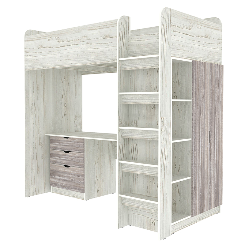 Кровать-чердак Polini Simple с письменным столом и шкафом Винтерберг Бетон
