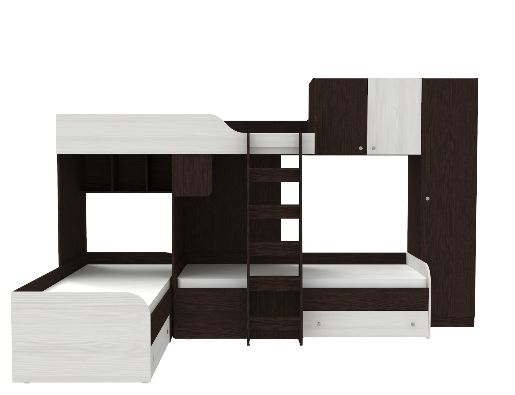 Кровать-чердак Трио 2 Венге Белое Дерево