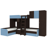 Кровать-чердак Трио 2 Венге Светло-синий, голубой