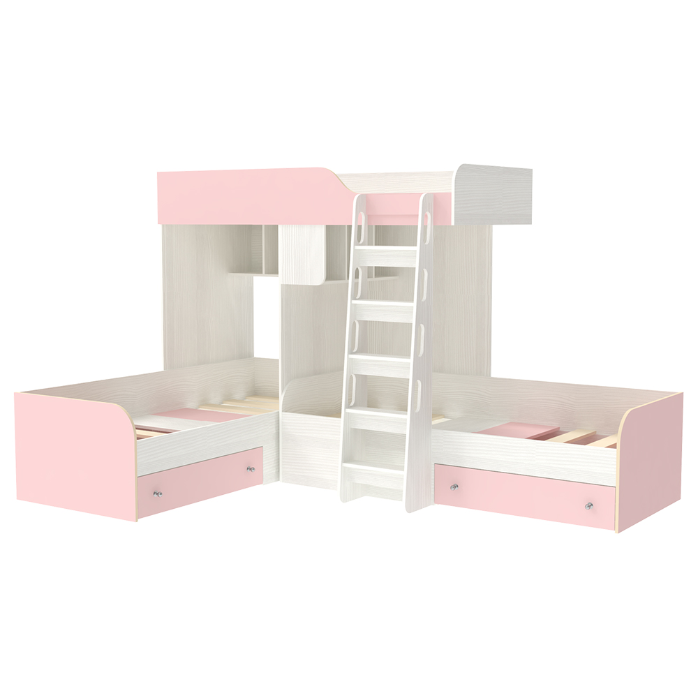 Вы можете купить Кровать-чердак КарИВи Трио Белое Дерево Розовый оптом в нашем магазине, предложим цену с оптовой скидкой.
