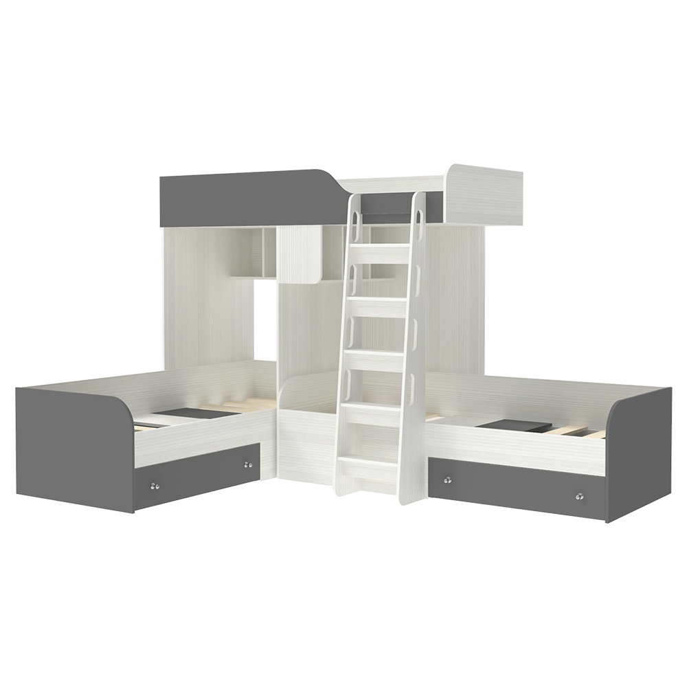 Вы можете купить Кровать-чердак КарИВи Трио Белое Дерево Темно-серый оптом в нашем магазине, предложим цену с оптовой скидкой.