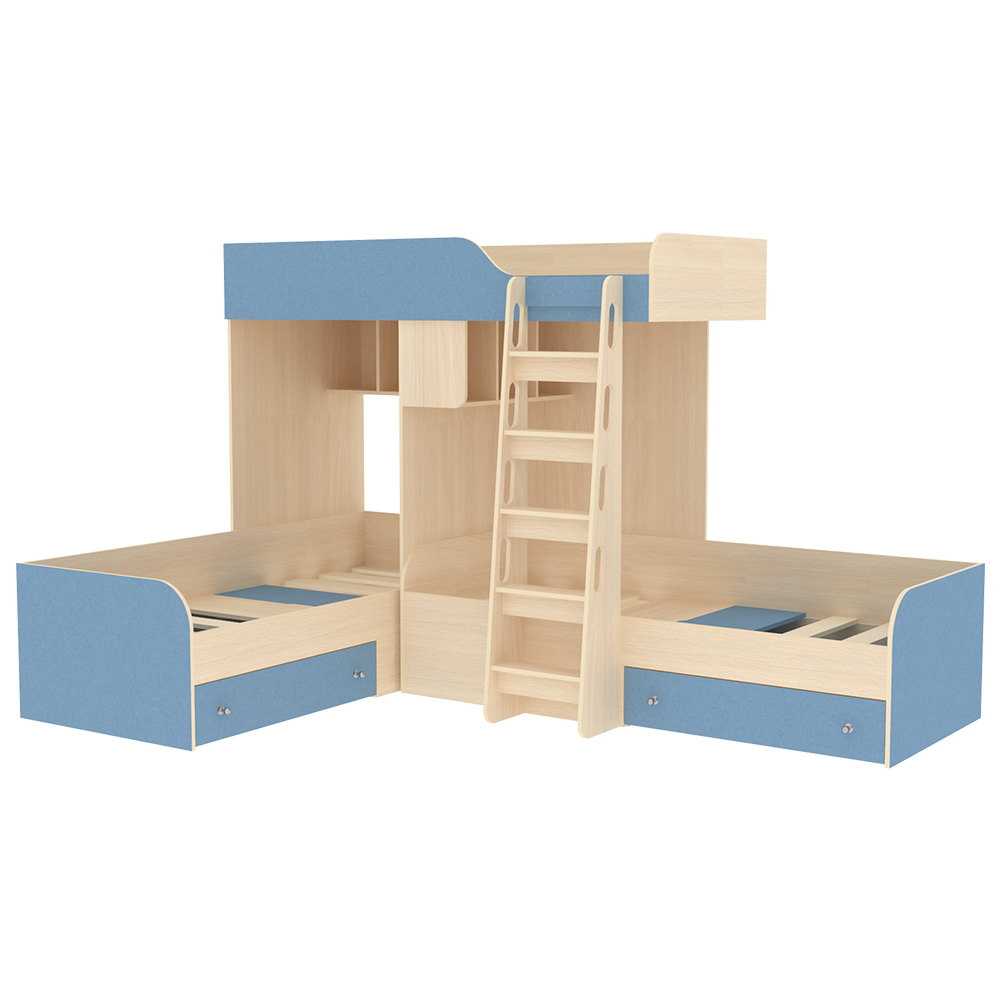 Кровать-чердак Трио Дуб Молочный Светло-синий, голубой