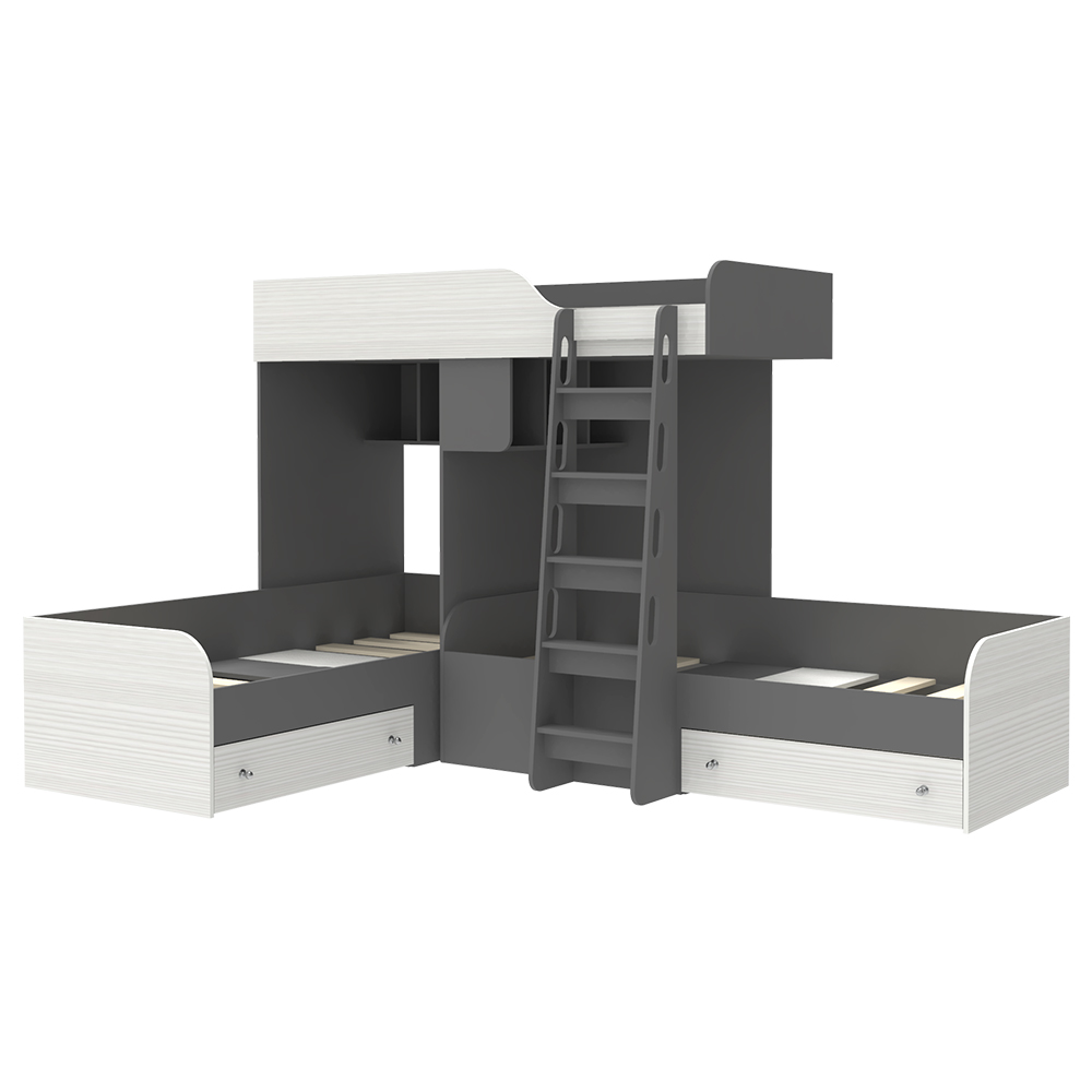 Кровать-чердак Трио Темно-серый Белое Дерево