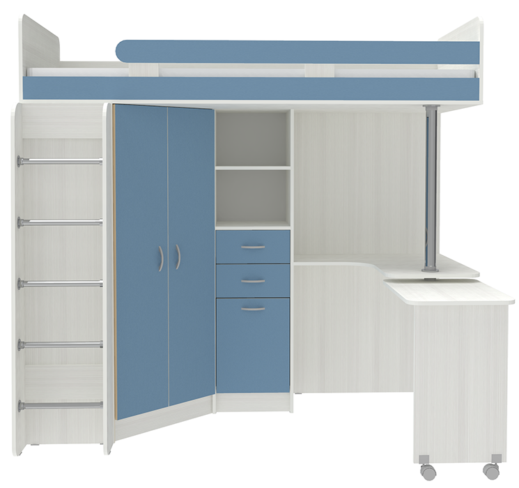 Вы можете купить Кровать-чердак КарИВи Юниор 3 с металлической лестницей Белое Дерево Светло-синий, голубой оптом в нашем магазине, предложим цену с оптовой скидкой.