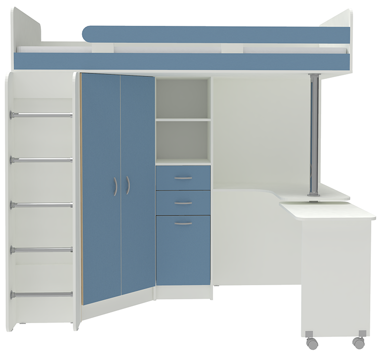Кровать-чердак Юниор 3 с металлической лестницей Белый Светло-синий, голубой