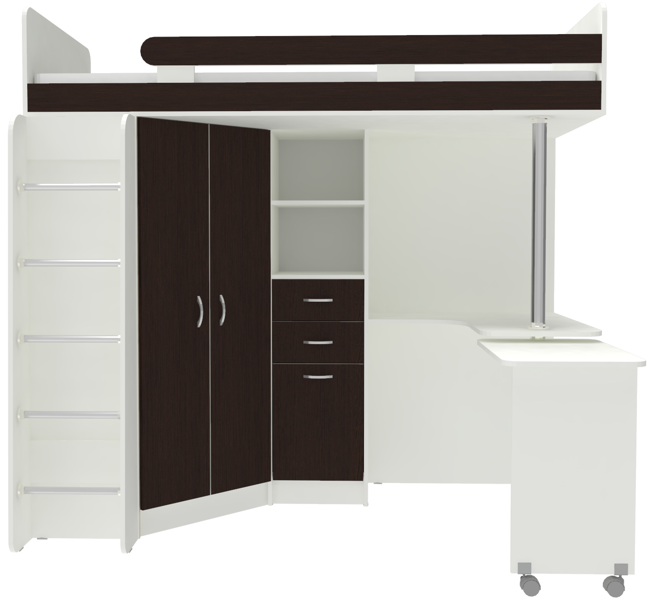 Кровать-чердак Юниор 3 с металлической лестницей Белый Венге