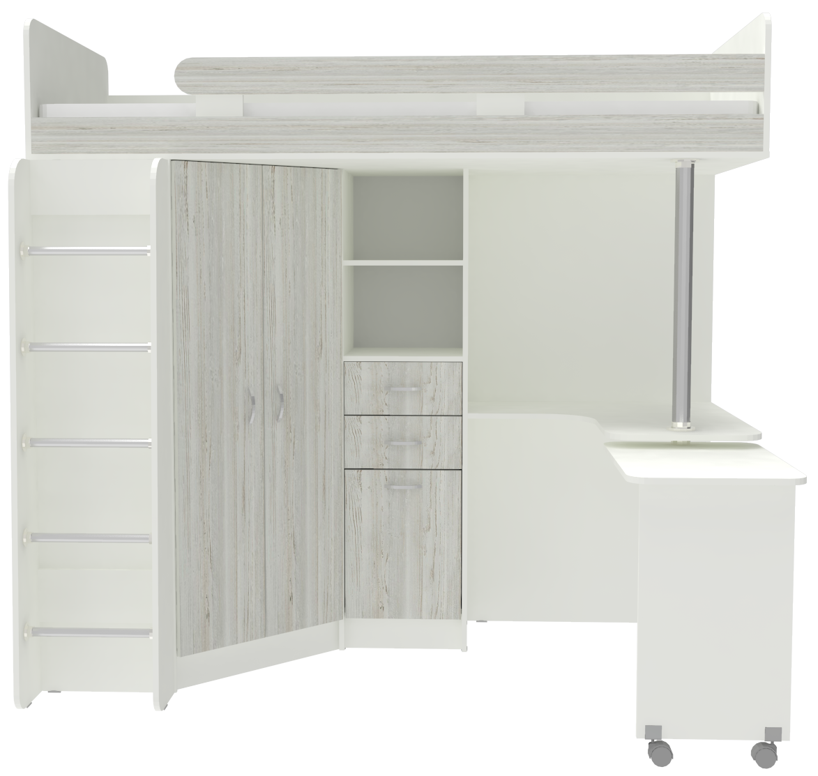 Кровать-чердак Юниор 3 с металлической лестницей Белый Винтерберг