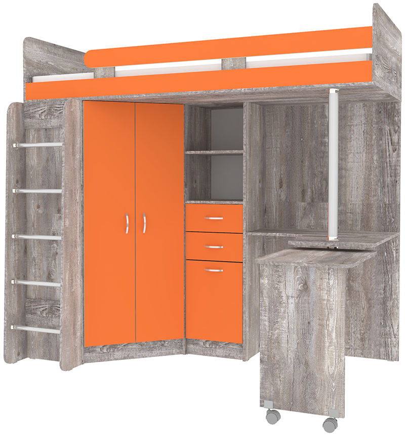 Кровать-чердак Юниор 3 с металлической лестницей Бетон Оранжевый