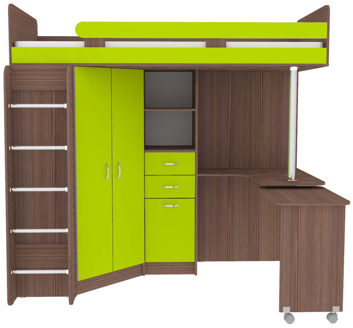 Вы можете купить Кровать-чердак КарИВи Юниор 3 с металлической лестницей Бодего Темный Лайм оптом в нашем магазине, предложим цену с оптовой скидкой.