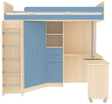 Кровать чердак Юниор 3 - уникальная модель, которая непременно понравится своей комфортностью, оригинальностью и многофункциональностью всем членам семьи. Несмотря на обилие функциональных предметов, этот комплекс выглядит аккуратно. Стильная и функциональная двухъярусная кровать для ваших детей, выполненная из качественных и натуральных материалов. Такая детская мебель является максимально удобной, соединяя в оригинальный комплект большое спальное место, удобное место для уроков и большой шкаф для одежды. Подойдет такой комплект для мальчика и девочки, ведь разнообразие расцветок может быть составлено в соответствии с вкусовыми предпочтениями ребенка и выбранной тематикой. Цветовое исполнение корпус: Венге, Дуб молочный, Белое дерево, Бодего темный, Белый, Винтерберг, Бетон. Цветовое исполнение фасады: Дуб молочный, Белое дерево, Белый, Бодего темный, Венге, Винтерберг, Бетон, Лайм, Светло Синий/Голубой, Розовый, Оранжевый, Ириc На цветных фасадах светло-бежевая кромка. Кровать-чердак Юниор 3 станет чудесным подарком для Вашего ребёнка.Характеристики