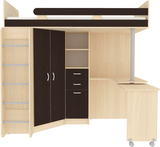 Кровать чердак Юниор 3 - уникальная модель, которая непременно понравится своей комфортностью, оригинальностью и многофункциональностью всем членам семьи. Несмотря на обилие функциональных предметов, этот комплекс выглядит аккуратно. Стильная и функциональная двухъярусная кровать для ваших детей, выполненная из качественных и натуральных материалов. Такая детская мебель является максимально удобной, соединяя в оригинальный комплект большое спальное место, удобное место для уроков и большой шкаф для одежды. Подойдет такой комплект для мальчика и девочки, ведь разнообразие расцветок может быть составлено в соответствии с вкусовыми предпочтениями ребенка и выбранной тематикой. Цветовое исполнение корпус: Венге, Дуб молочный, Белое дерево, Бодего темный, Белый, Винтерберг, Бетон. Цветовое исполнение фасады: Дуб молочный, Белое дерево, Белый, Бодего темный, Венге, Винтерберг, Бетон, Лайм, Светло Синий/Голубой, Розовый, Оранжевый, Ириc На цветных фасадах светло-бежевая кромка. Кровать-чердак Юниор 3 станет чудесным подарком для Вашего ребёнка.Характеристики