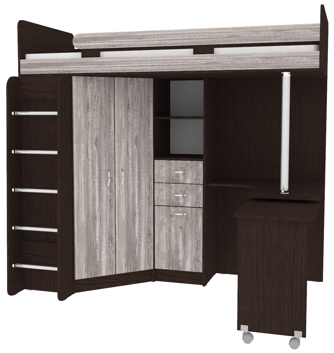 Кровать-чердак Юниор 3 с металлической лестницей Венге Бетон