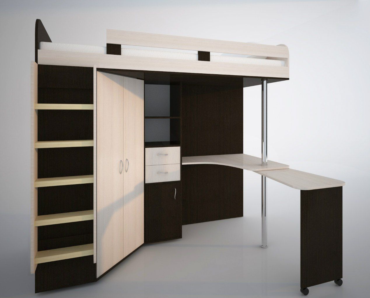 Кровать-чердак Юниор 3 с металлической лестницей Венге Дуб Молочный