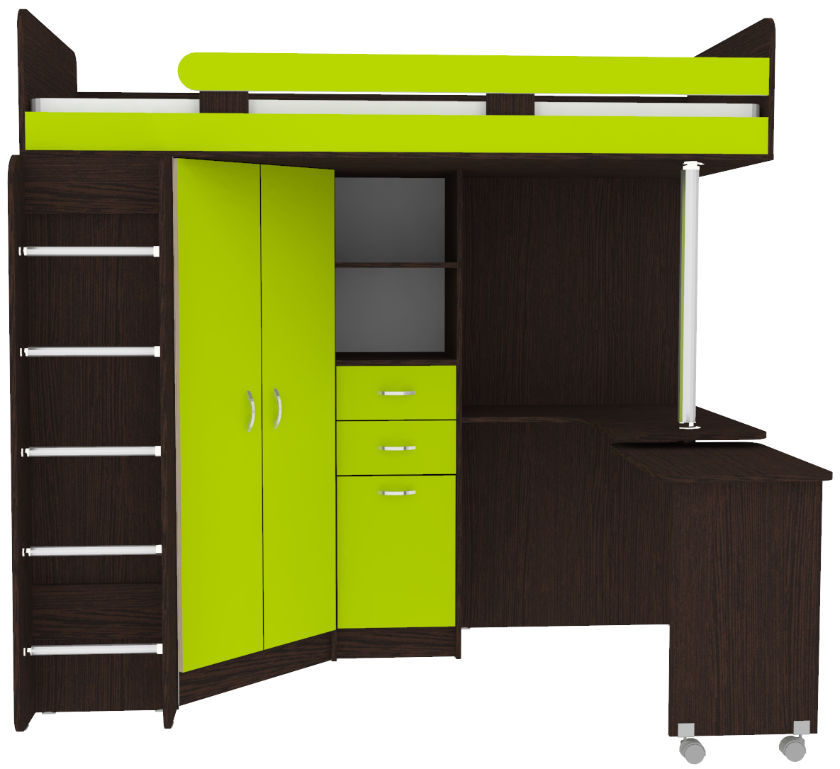 Вы можете купить Кровать-чердак КарИВи Юниор 3 с металлической лестницей Венге Лайм оптом в нашем магазине, предложим цену с оптовой скидкой.
