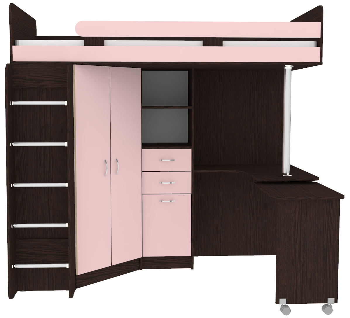 Кровать-чердак Юниор 3 с металлической лестницей Венге Розовый
