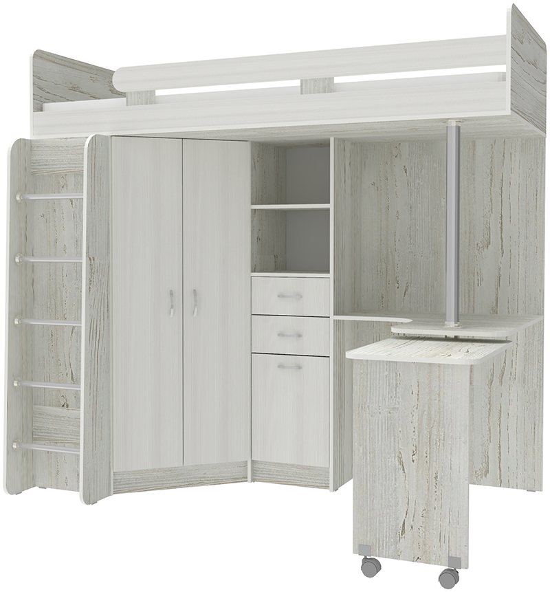 Вы можете купить Кровать-чердак КарИВи Юниор 3 с металлической лестницей Винтерберг Белое Дерево оптом в нашем магазине, предложим цену с оптовой скидкой.