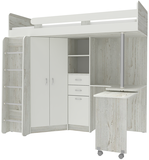 Кровать чердак Юниор 3 - уникальная модель, которая непременно понравится своей комфортностью, оригинальностью и многофункциональностью всем членам семьи. Несмотря на обилие функциональных предметов, этот комплекс выглядит аккуратно. Стильная и функциональная двухъярусная кровать для ваших детей, выполненная из качественных и натуральных материалов. Такая детская мебель является максимально удобной, соединяя в оригинальный комплект большое спальное место, удобное место для уроков и большой шкаф для одежды. Подойдет такой комплект для мальчика и девочки, ведь разнообразие расцветок может быть составлено в соответствии с вкусовыми предпочтениями ребенка и выбранной тематикой. Цветовое исполнение корпус: Венге, Дуб молочный, Белое дерево, Бодего темный, Белый, Винтерберг, Бетон. Цветовое исполнение фасады: Дуб молочный, Белое дерево, Белый, Бодего темный, Венге, Винтерберг, Бетон, Лайм, Светло Синий/Голубой, Розовый, Оранжевый, Ириc На цветных фасадах светло-бежевая кромка. Кровать-чердак Юниор 3 станет чудесным подарком для Вашего ребёнка.Характеристики