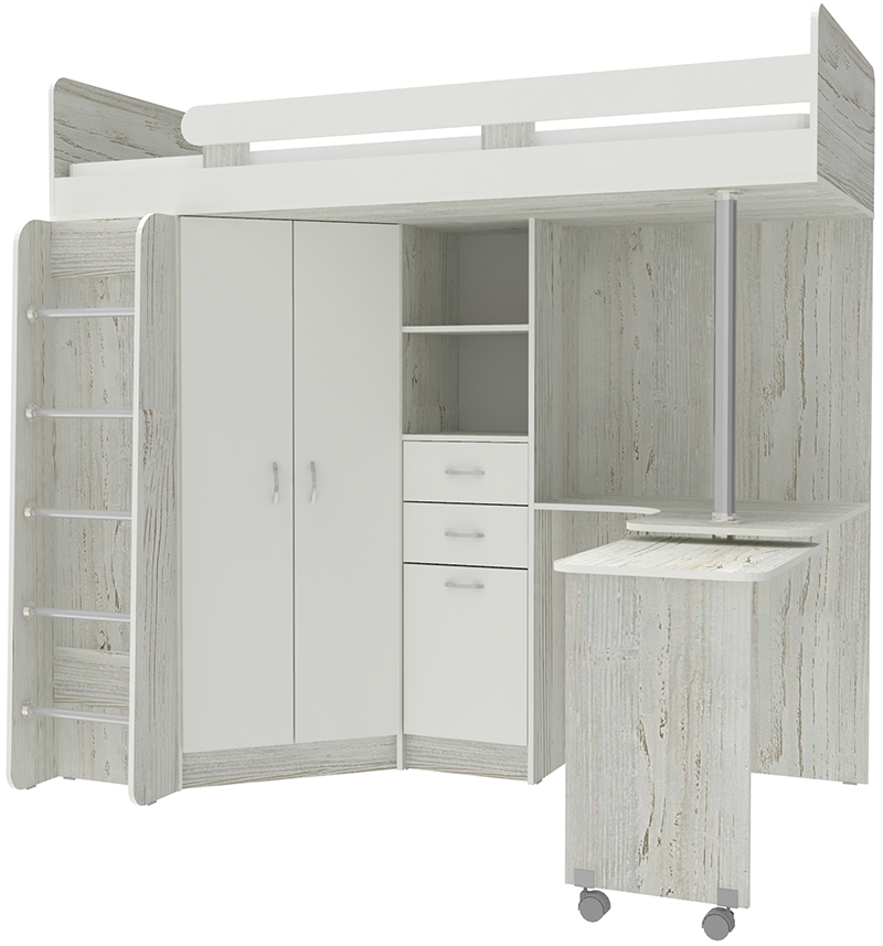 Кровать-чердак Юниор 3 с металлической лестницей Винтерберг Белый