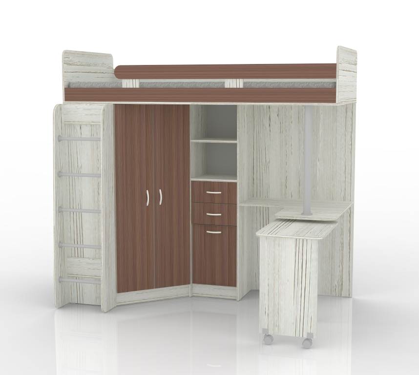 Кровать чердак Юниор 3 - уникальная модель, которая непременно понравится своей комфортностью, оригинальностью и многофункциональностью всем членам семьи. Несмотря на обилие функциональных предметов, этот комплекс выглядит аккуратно. Стильная и функциональная двухъярусная кровать для ваших детей, выполненная из качественных и натуральных материалов. Такая детская мебель является максимально удобной, соединяя в оригинальный комплект большое спальное место, удобное место для уроков и большой шкаф для одежды. Подойдет такой комплект для мальчика и девочки, ведь разнообразие расцветок может быть составлено в соответствии с вкусовыми предпочтениями ребенка и выбранной тематикой. Цветовое исполнение корпус: Венге, Дуб молочный, Белое дерево, Бодего темный, Белый, Винтерберг, Бетон. Цветовое исполнение фасады: Дуб молочный, Белое дерево, Белый, Бодего темный, Венге, Винтерберг, Бетон, Лайм, Светло Синий/Голубой, Розовый, Оранжевый, Ириc На цветных фасадах светло-бежевая кромка. Кровать-чердак Юниор 3 станет чудесным подарком для Вашего ребёнка.Характеристики