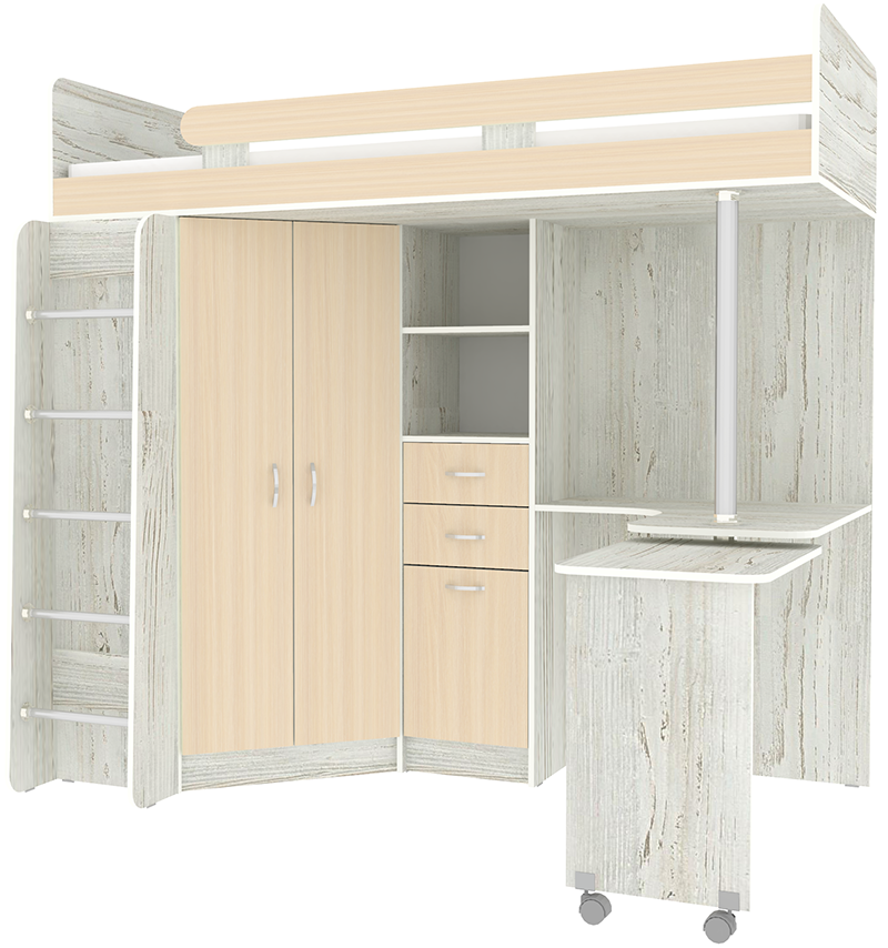 Кровать-чердак Юниор 3 с металлической лестницей Винтерберг Дуб Молочный