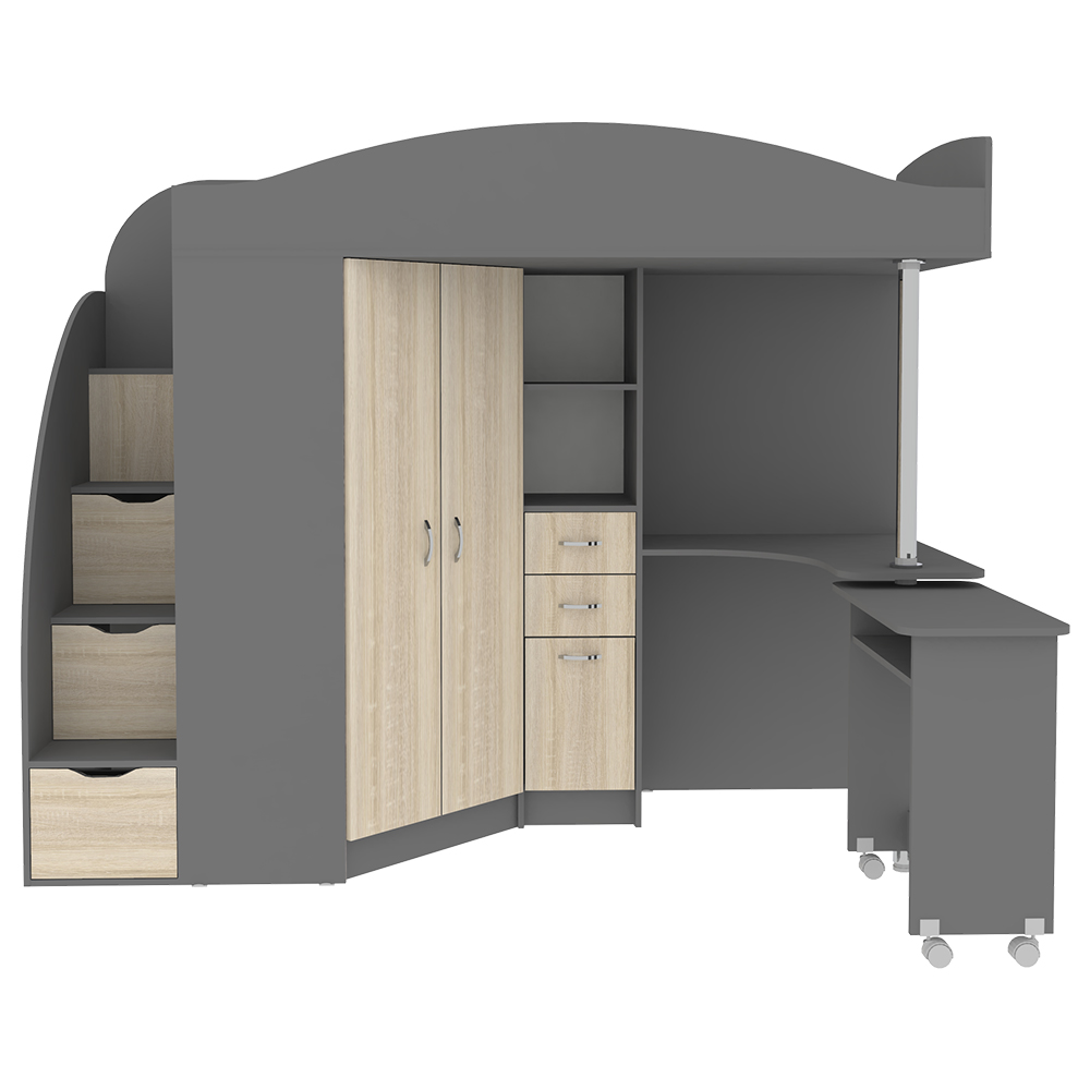 Кровать-чердак Юниор 4 Темно-серый Дуб Сонома
