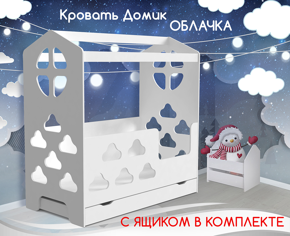 Кровать Домик Облачка с ящиком Белый
