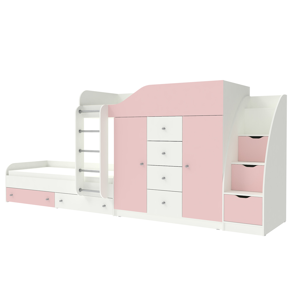 Кровать двухъярусная Астра 6 с лестницей комодом Белый Розовый