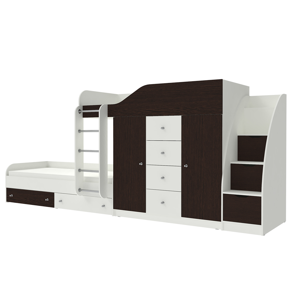 Кровать двухъярусная Астра 6 с лестницей комодом Белый Венге