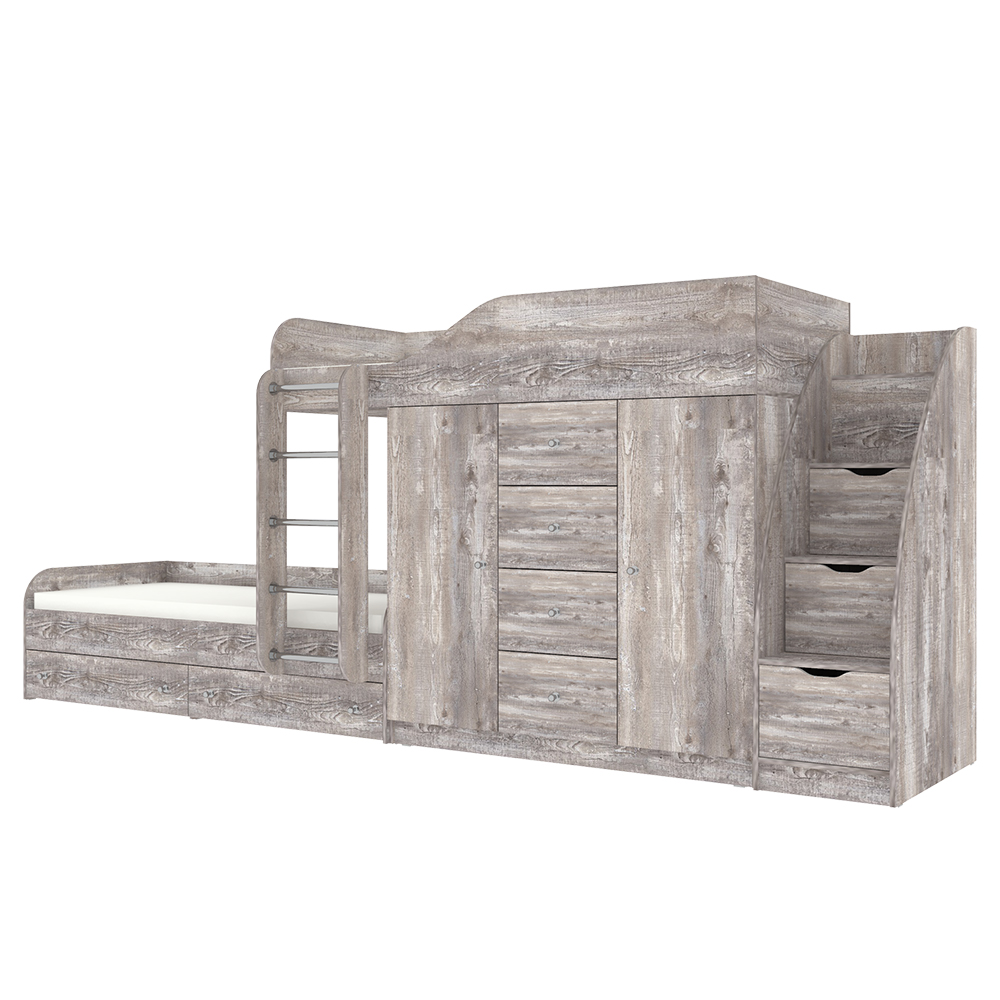 Кровать двухъярусная Астра 6 с лестницей комодом Бетон Бетон