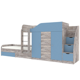 Кровать двухъярусная Астра 6 с лестницей комодом Бетон Светло-синий, голубой