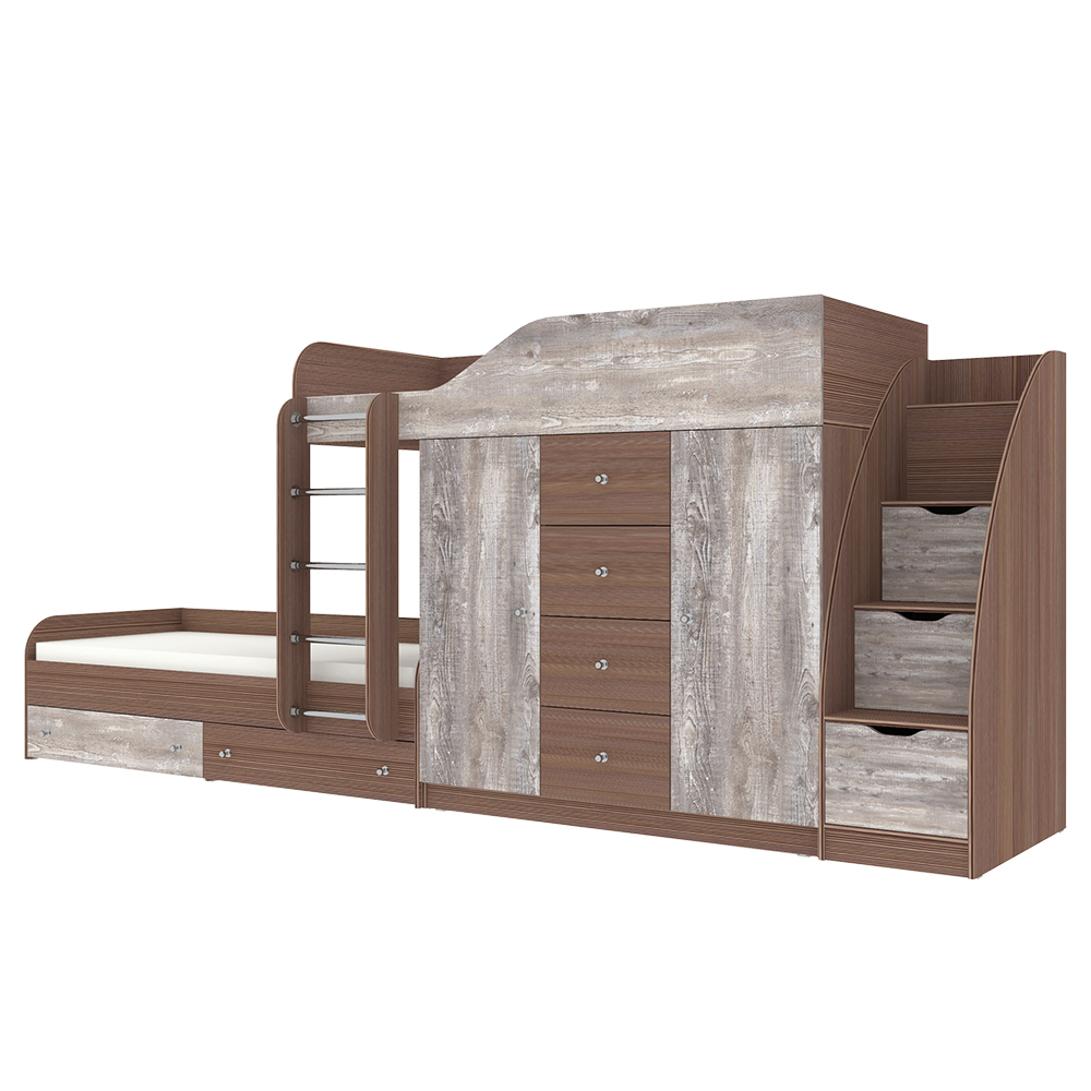 Кровать двухъярусная Астра 6 с лестницей комодом Бодего Темный Бетон