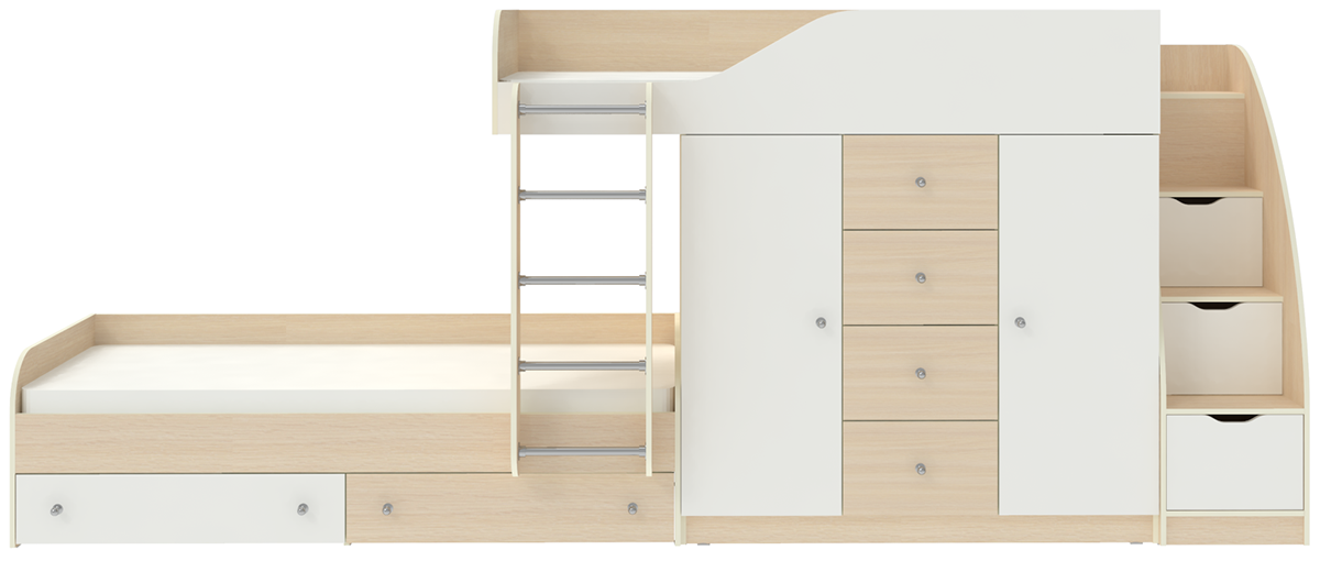 Вы можете купить Кровать двухъярусная КарИВи Астра 6 с лестницей Комод КарИВиом Дуб Молочный Белый оптом в нашем магазине, предложим цену с оптовой скидкой.