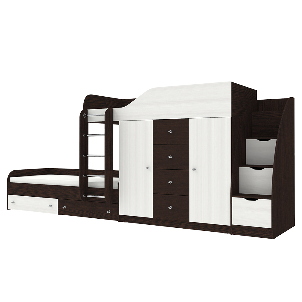 Кровать двухъярусная Астра 6 с лестницей комодом Венге Белое Дерево