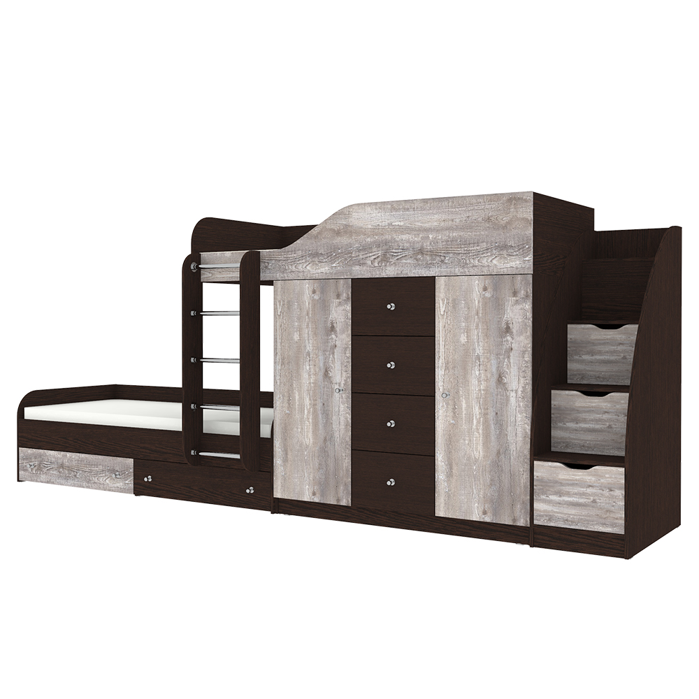 Кровать двухъярусная Астра 6 с лестницей комодом Венге Бетон
