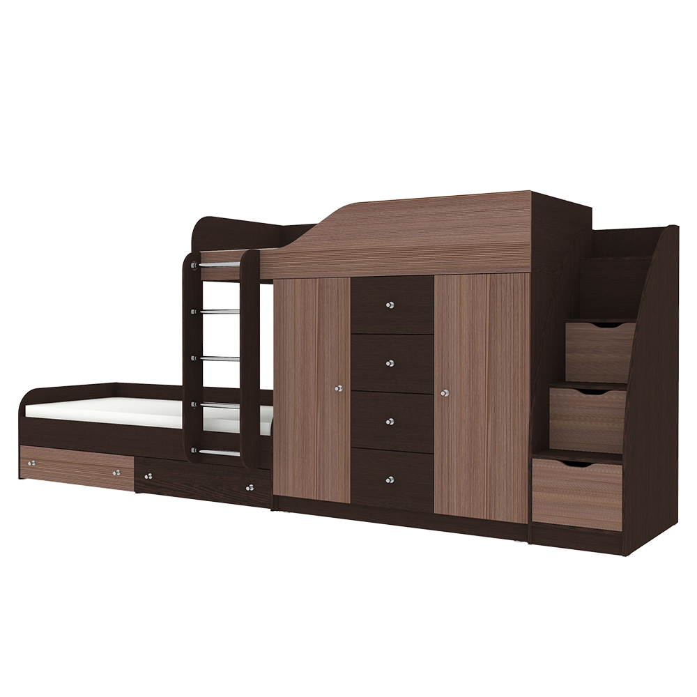 Кровать двухъярусная Астра 6 с лестницей комодом Венге Бодего Темный
