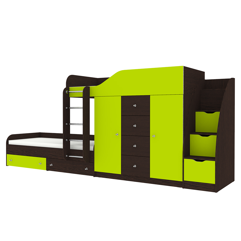 Кровать двухъярусная Астра 6 с лестницей комодом Венге Лайм