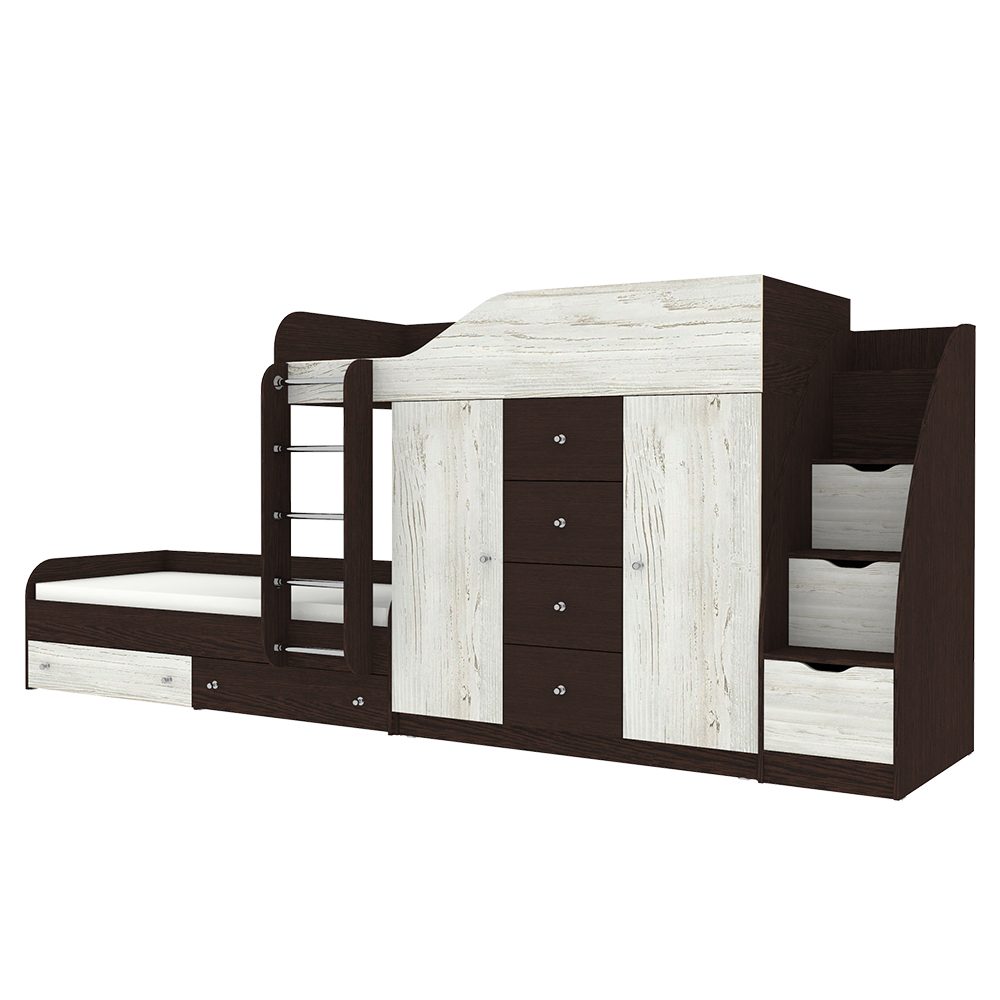 Кровать двухъярусная Астра 6 с лестницей комодом Венге Винтерберг