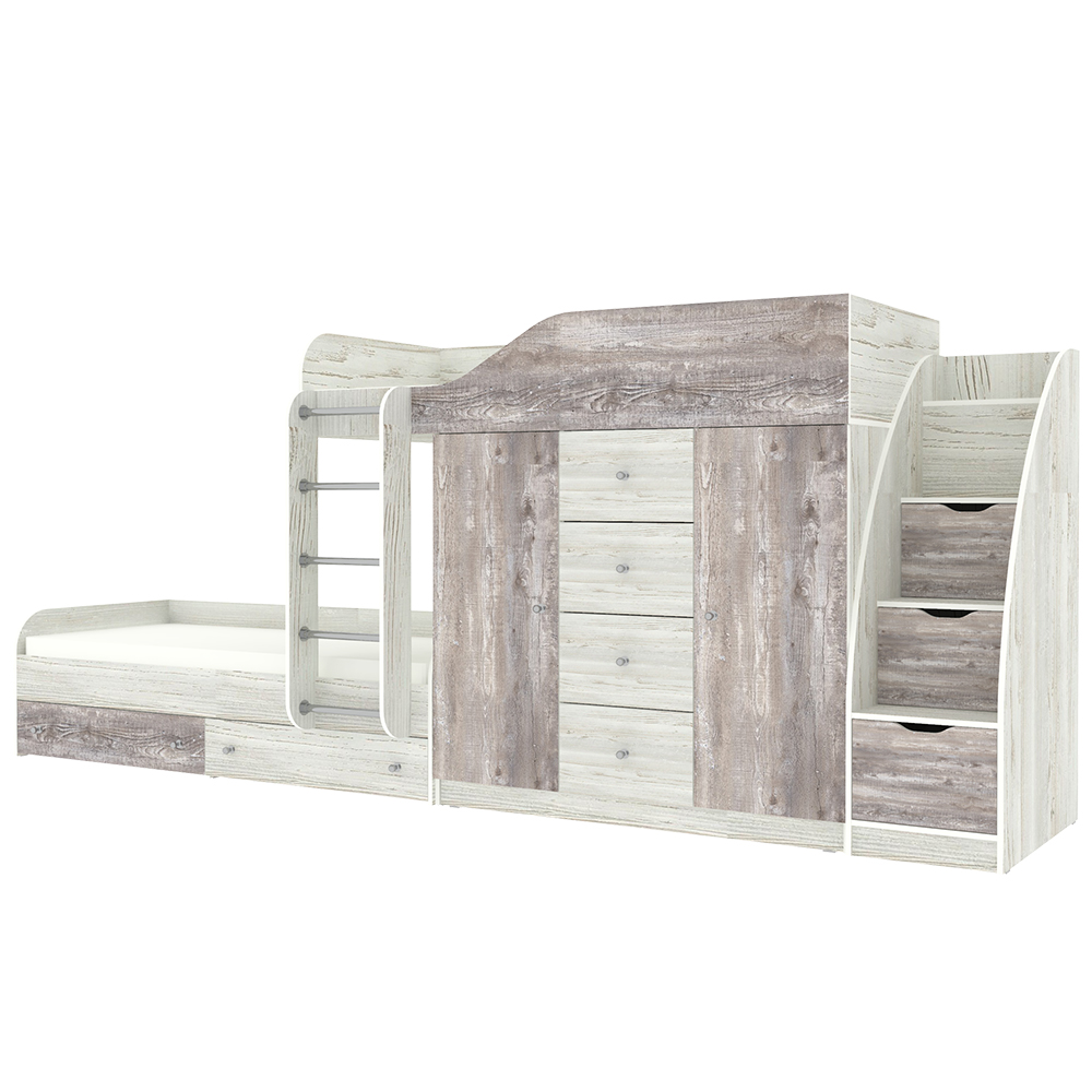 Кровать двухъярусная Астра 6 с лестницей комодом Винтерберг Бетон