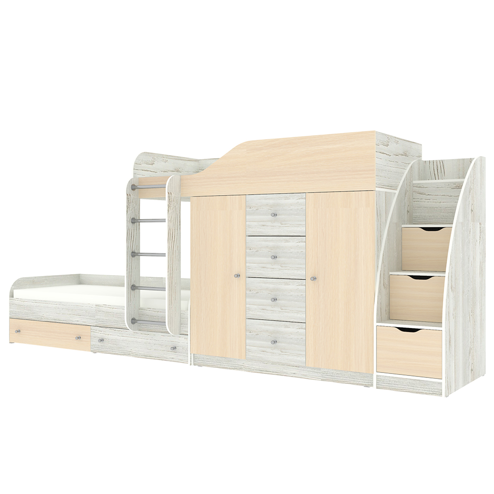 Кровать двухъярусная Астра 6 с лестницей комодом Винтерберг Дуб Молочный