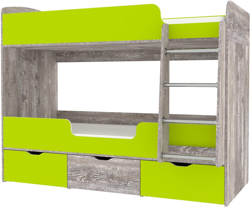 Вы можете купить Кровать двухъярусная КарИВи Малыш Двойняшка 80х180 Бетон Лайм оптом в нашем магазине, предложим цену с оптовой скидкой.