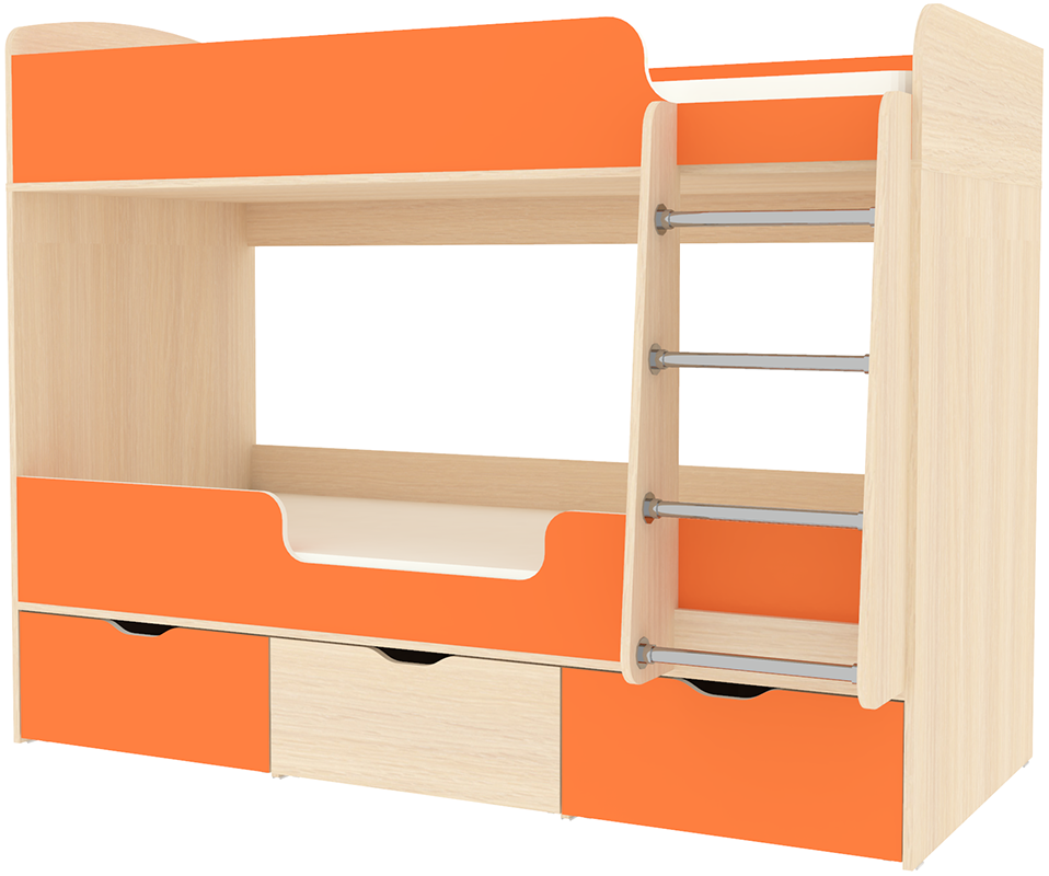 Кровать двухъярусная Малыш Двойняшка 80х180 Дуб Молочный Оранжевый