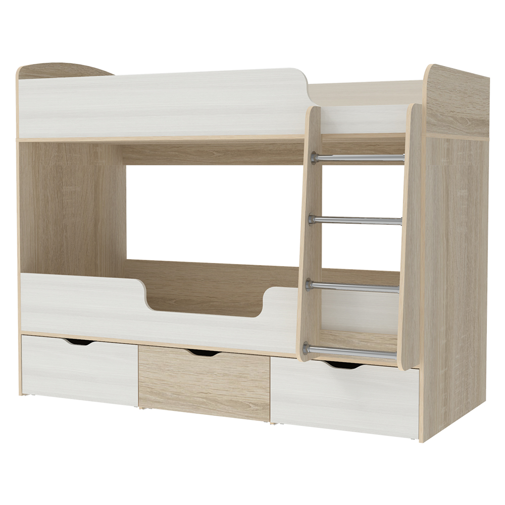 Кровать двухъярусная Малыш Двойняшка 80х180 Дуб Сонома Белое Дерево