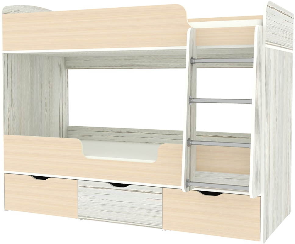 Двухъярусная кроватьМалыш двойняшка 80х180 решает проблему малого пространства сочетая в себе целый ряд функций: спальное место для двоих,вместительные выдвижные ящики под кроватью, а так же удобная лестница, обеспечивающая быстрый и безопасный доступ на второй этаж. На цветных фасадах: цвет кромки - бежевый.