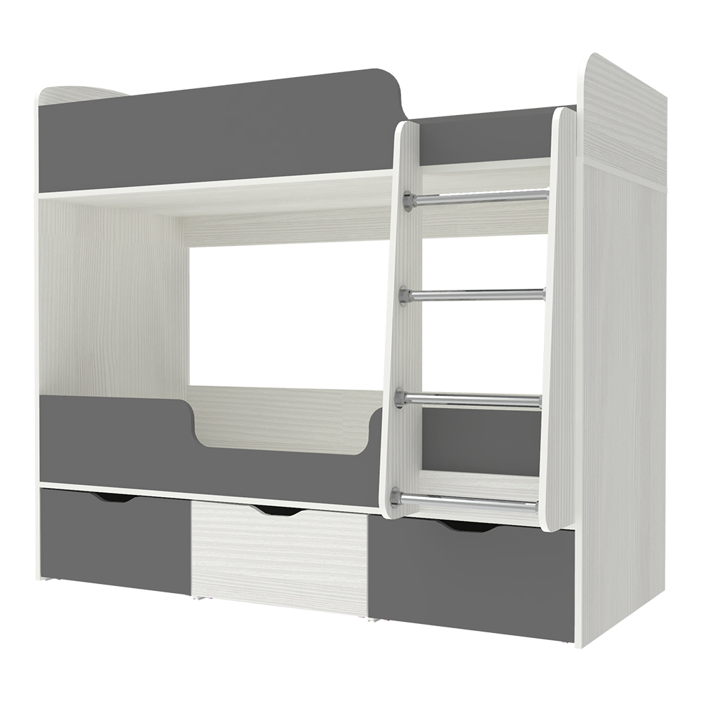 Кровать двухъярусная Малыш Двойняшка Белое Дерево Темно-серый