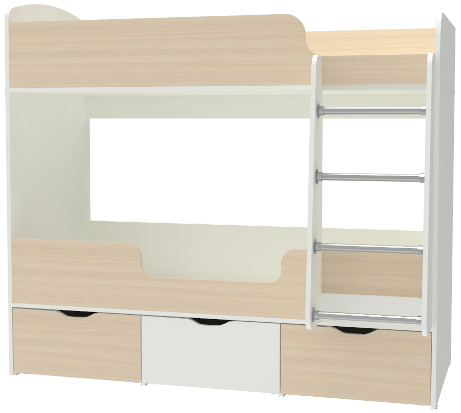 Двухъярусная кроватьМалыш двойняшкарешает проблему малого пространства сочетая в себе целый ряд функций: спальное место для двоих,вместительные выдвижные ящики под кроватью, а так же удобная лестница, обеспечивающая быстрый и безопасный доступ на второй этаж. На цветных фасадах: цвет кромки - бежевый. Матрасы приобретаются отдельно.Характеристики
