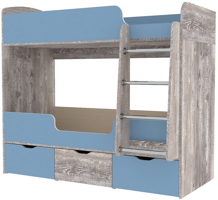 Кровать двухъярусная Малыш Двойняшка Бетон Светло-синий, голубой